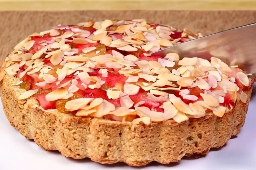 - Polvilhe amêndoas em lascas por cima da mistura de maçãs.