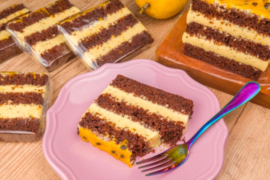 Receita de Bolo de Chocolate bem molhadinho com muita mousse de maracujá