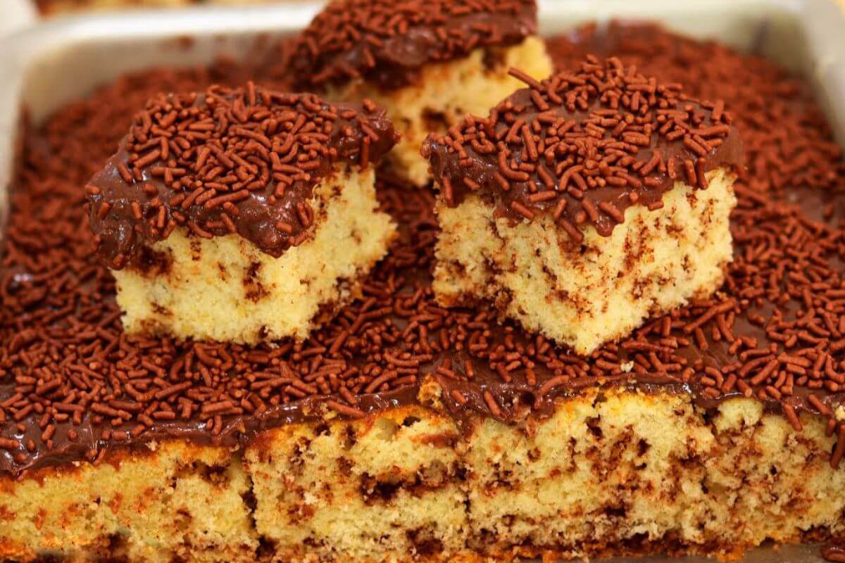 Para fazer bolo formigueiro vamos precisar de farinha de trigo, açúcar, leite, óleo, fermento em pó, ovos e granulado de chocolate. Iremos bater na batedeira os ingredientes da massa do bolo formigueiro, exceto a farinha de trigo, o leite, o fermento e o granulado de chocolate, que serão misturado por último numa tigela e com um fouet. Em seguida vamos despejar essa mistura numa forma retangular untada e enfarinhada, e levar o bolo formigueiro para assar por cerca de 30 minutos em forno pré-aquecido a 180 graus. Iremos retirar o bolo formigueiro do forno, cortar em quadradinhos, e cobrir com a cobertura preparada seguindo o passo a passo. Vamos finalizar decorando com granulado de chocolate e servir esse espetáculo de bolo formigueiro!