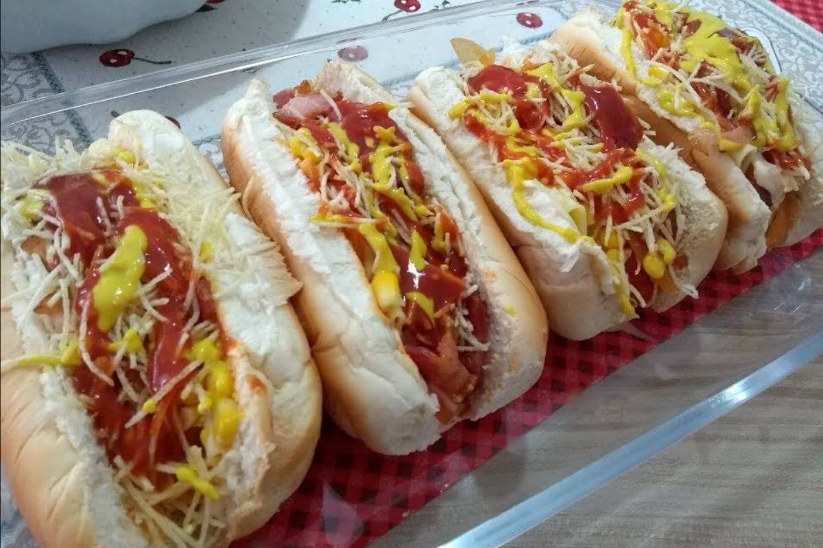 Para fazer cachorro quente iremos utilizar tomate, cebola, salsichas, extrato de tomate, sal, óleo e água. Vamos misturar numa panela os ingredientes do molho do cachorro quente, levar ao fogo médio até cozinhar bem. Para a montagem, no pão de leite iremos precisar de catchup, mostarda, milho em conserva, bacon frito, batata palha e mussarela fatiada. Teremos que seguir o passo a passo da montagem para obter sucesso do resultado. Depois disso é só saborear cada mordida suculenta nesse cachorro quente dos deuses!