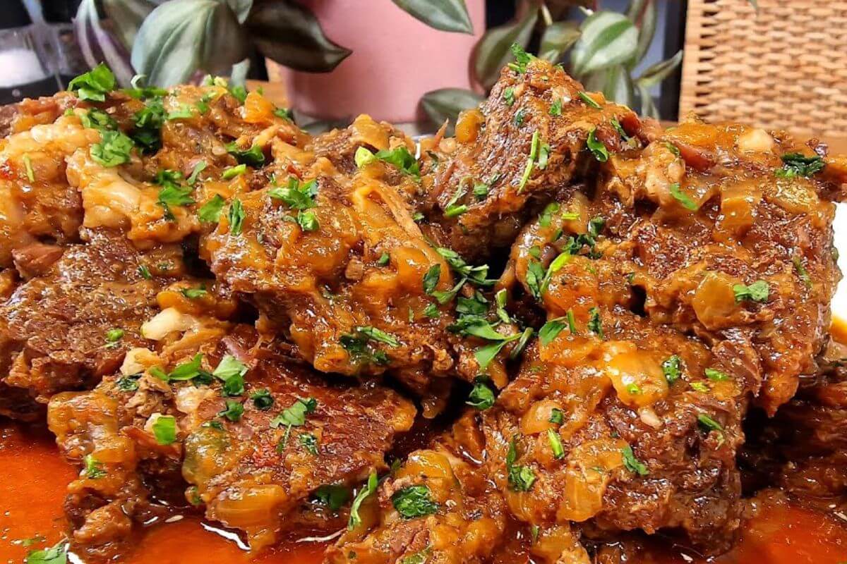 - Aí é só misturar tudo para espalhar a cebola caramelizada e saborear essa maravilha de costela de panela de pressão!