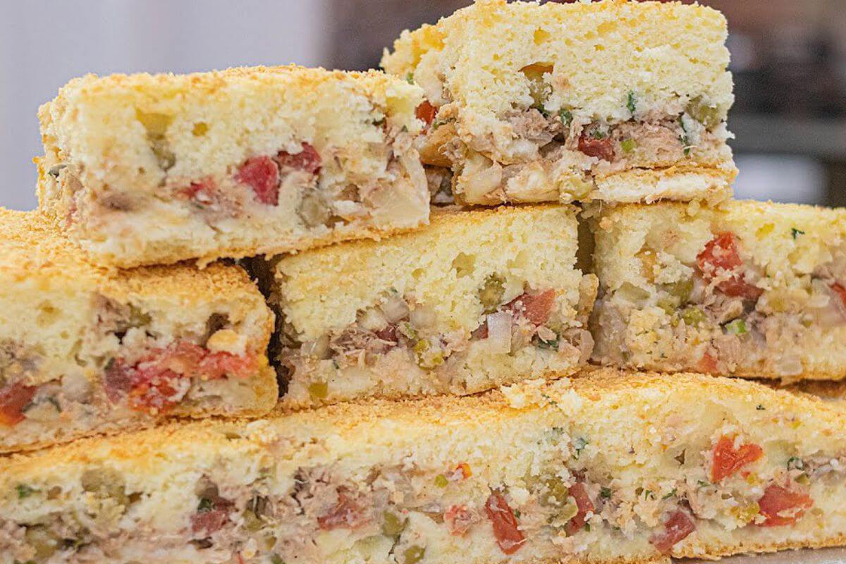 - Retire, deixe amornar, sirva e saboreie sua espetacular torta de atum! Bom apetite!